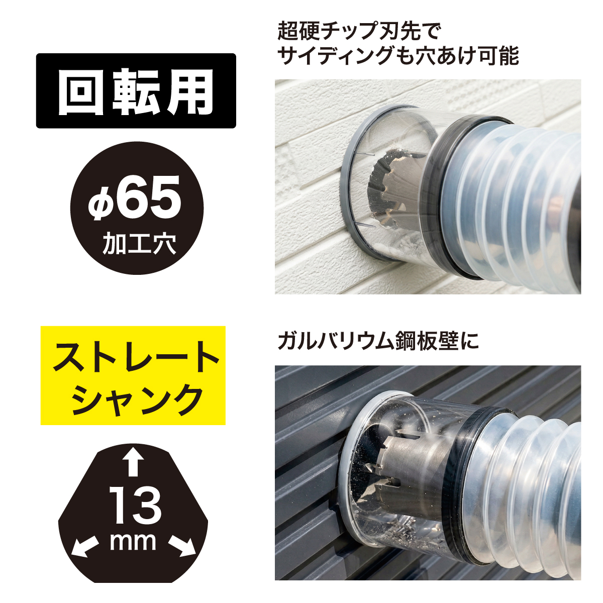 ●超硬チップ刃先で、サイディング・石こうボード・ガルバリウム鋼板まで穴あけ可能