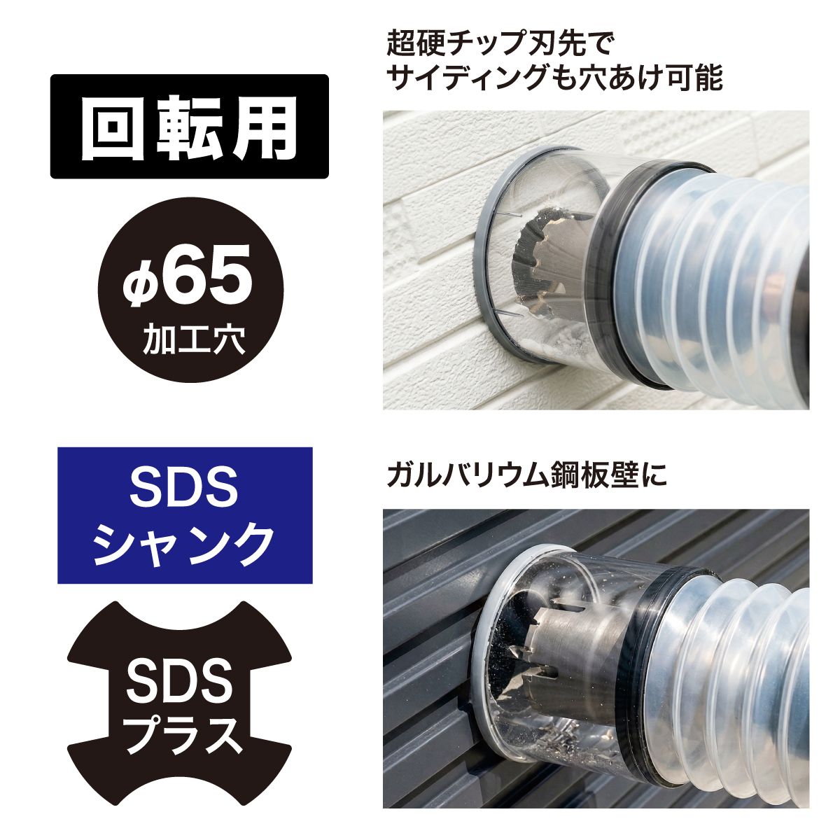 ●超硬チップ刃先で、サイディング・石こうボード・ガルバリウム鋼板まで穴あけ可能