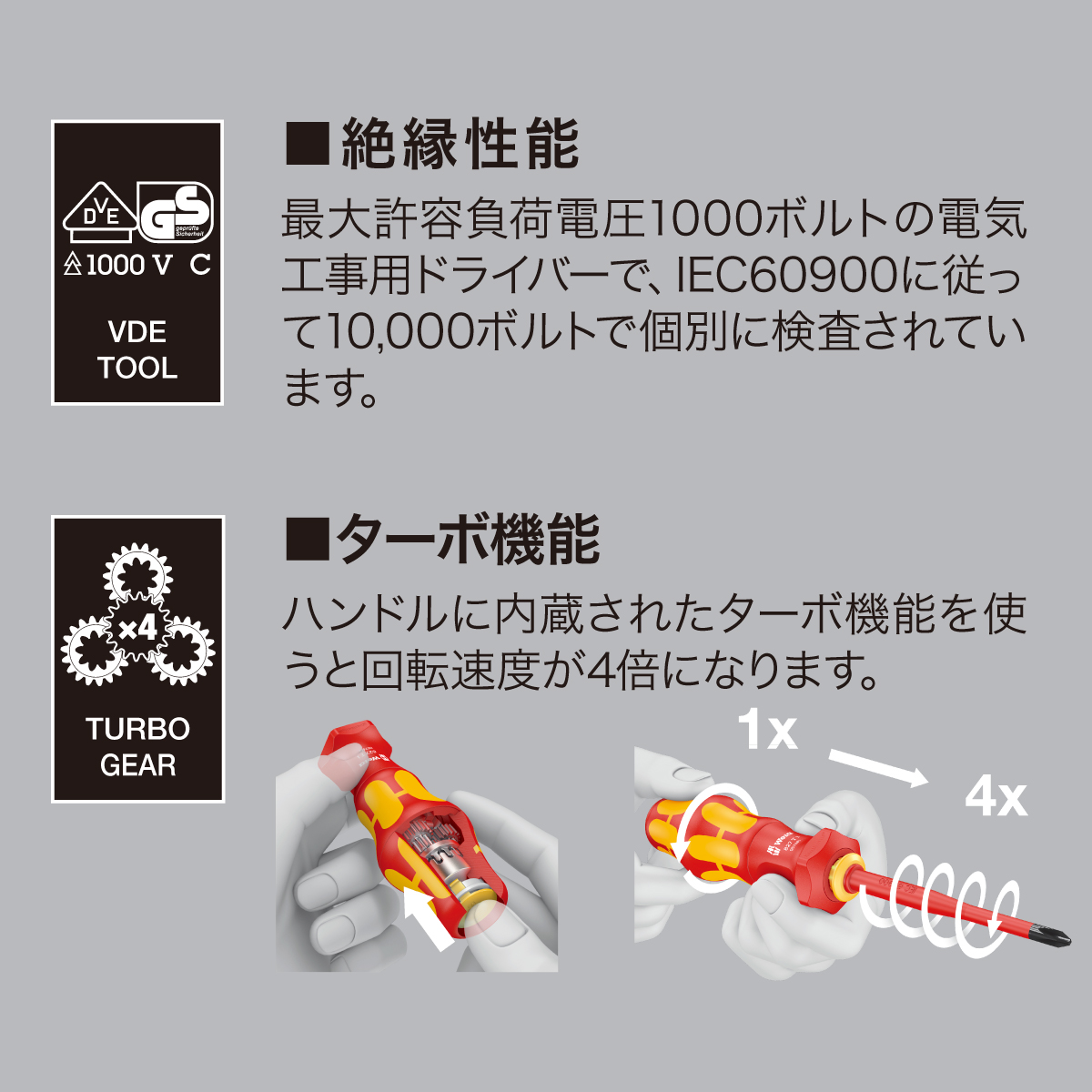 IEC60900の1万V個別検査済のターボ機能付ビットハンドル