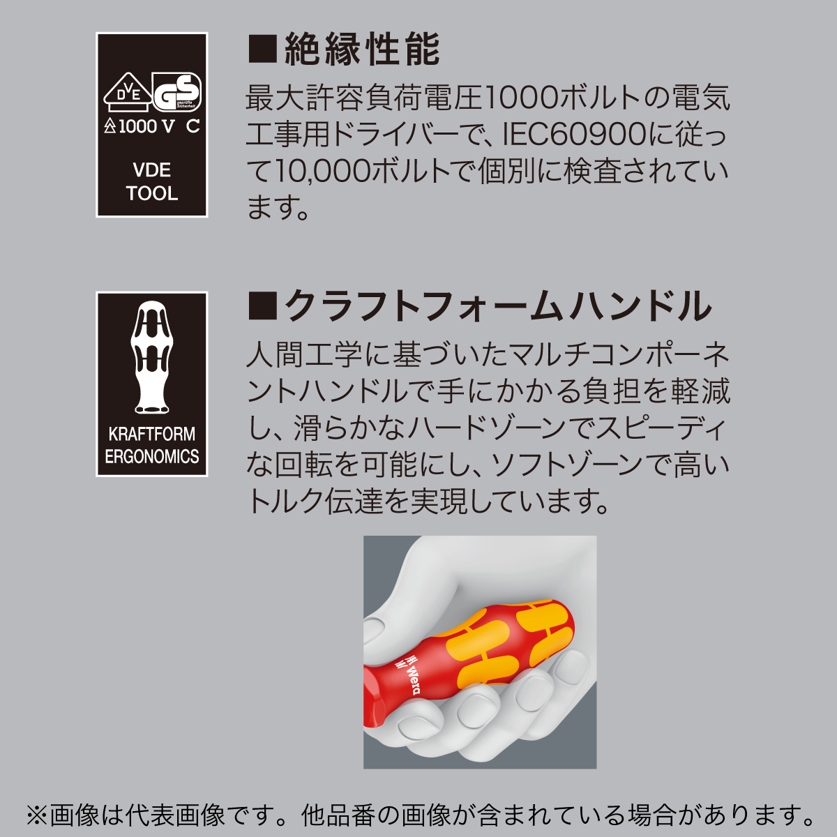 ・最大許容負荷電圧1000ボルトの電気工事用ドライバーで、