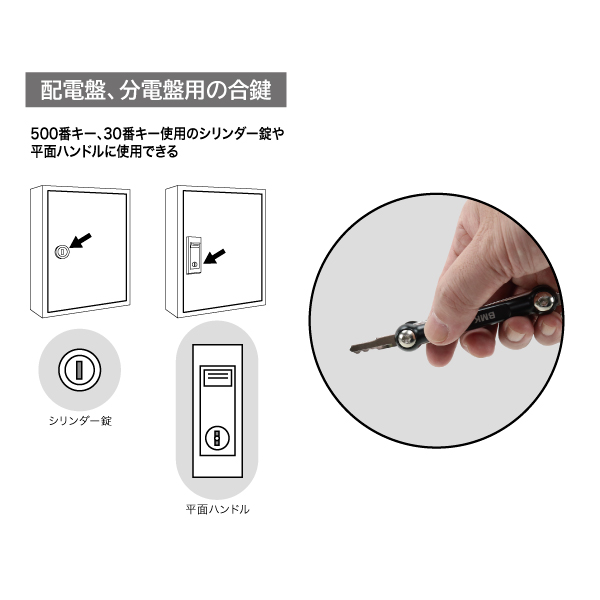 ・500番キー、30番キー使用のシリンダー錠や平面ハンドルに使用できる