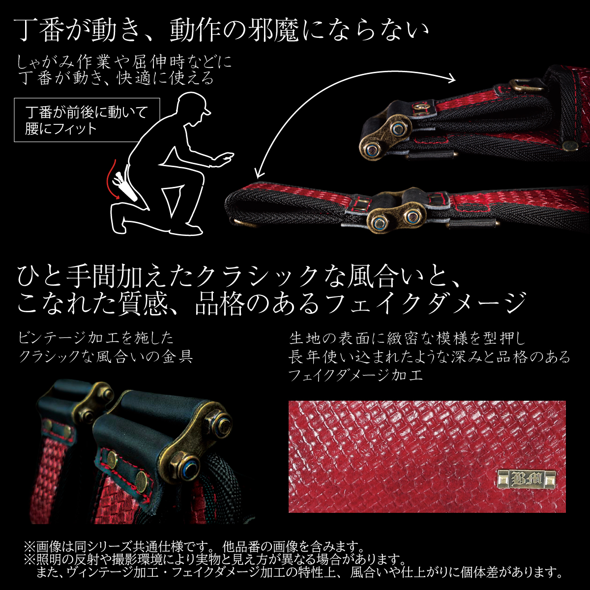 ・しゃがみ作業や屈伸時などに丁番が動き、快適に使える