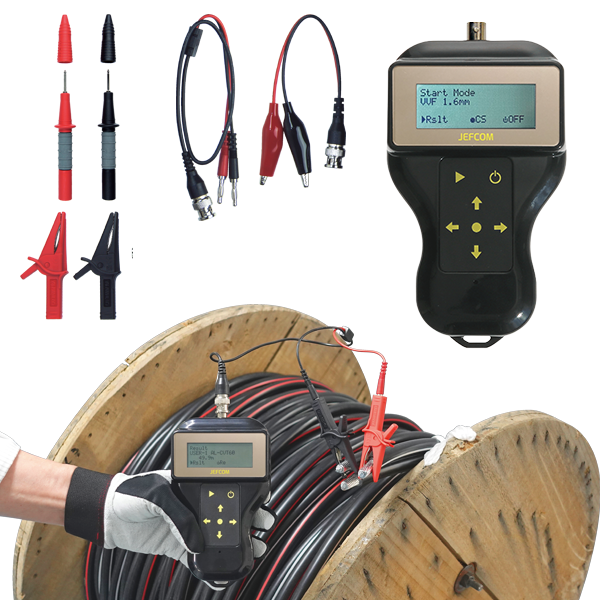 この工具は、ケーブルの片端を接続して、ボタンを押すだけで長さを自動計測してくれる優れもの。たとえば、100mのケーブルドラムから必要な分だけ引き出して使った後、残りの長さを知りたい時も、ドラムを持ち上げることなく正確に測定できます。